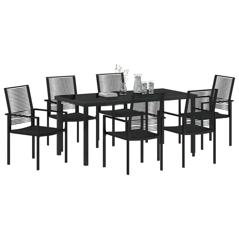 Комплект за хранене в градината 7 pcs Черно PVC ратан