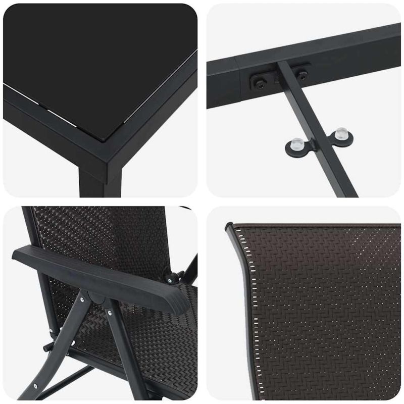 Този модерен градински комплект за хранене предлага стилно решение за външно хранене и отдих. Комбинацията от елегантен модерен дизайн и функционална универсалност прави тази мебел отличаваща се в която и да е градина или тераса. Идеален за летни събирания, този комплект за хранене кани семейството и приятелите да се насладят на открито ястия, докато се наслаждават на уютната атмосфера, която създава. Чистите линии и съвременни материали подобряват привлекателността на всяко външно пространство, като предлагат елегантност и ежедневна практичност. Материали: Изработени от висококачествен полиратан, предлагащ издръжлив и стилен вид, подходящ за всяко открито пространство. Този материал осигурява UV защита, запазвайки красотата си с времето и предоставяща здрава структура срещу променливите метеорологични условия. Прахово боядисаната стомана подобрява устойчивостта на рамката, увеличавайки издръжливостта и предлагайки атрактивна съвременна естетика. Включени компоненти: Комплектът включва полиратанови столове с опорни гръбчета и удобни подлакътници. Закаленото стъкло на масата предлага гладка и здрава повърхност, перфектна за хранене или дейности. Всички части, от прахово боядисаните стоманени крака до плетените полиратанови гръбчета, работят безпроблемно за предоставяне на комфорт и стабилност. Характеристики / Функция / Дизайн: Лесно съхранявайте комплекта, когато не се използва, благодарение на сгъваемия, регулируем дизайн. Седемте регулируеми нива позволяват да намерите идеалната височина за всякакъв случай, докато механизмът с лост прави трансITIONS гладък, адаптира се към различни дейности и предпочитания. Препоръчителни приложения: Идеален за организиране на градински партита или спокойни вечери под звездите. Комплектът красиво се адаптира към всяка външна обстановка, правейки го идеален за тераси, патрио или по-големи задни дворове. Неговата многофункционалност означава, че обслужва както интимни семейни вечери, така и по-големи социални събирания. Грижа и поддръжка: Запазете вида му, като използвате водоустойчиво покривало, когато не се използва, за да го защитите от външни условия. Регулярното почистване на стъклената повърхност и рамката с суха кърпа осигурява поддържане на чистота и привлекателност сезон след сезон. Максимално 110 кг на седалка.
