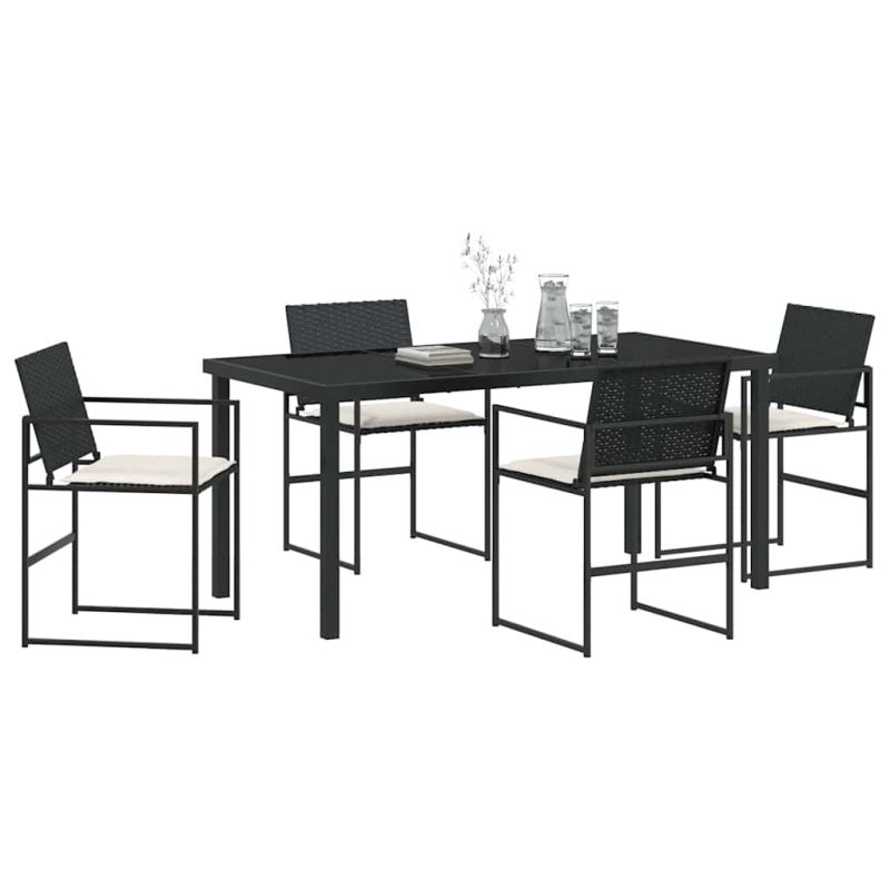 Комплект за хранене в градината 5 pcs Черно Полиратан