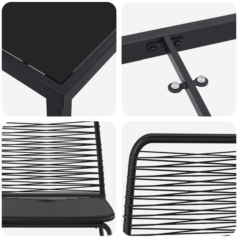 Този комплект за хранене на открито съчетава модерен вид с много функции, което го прави страхотен за всяка градина или тераса. Има елегантна полиратанова повърхност, която комбинира стил и комфорт. Солидната прахово боядисана рамка му дава добра стабилност, което го прави подходящ за малки и големи събирания на открито. Непрозрачната задна страна изглежда добре от всяка страна, добавяйки модерен акцент на вашето външно пространство. Прахово боядисана рамка: Всяка част от този комплект има прахово боядисана стоманена рамка, устойчива на времето, предлагаща супер стабилност. Тази обработка го защитава от ръжда и запазва добрия му вид. Изтъкана полиратанова материя: Изработен е с изтъкана полиратанова повърхност за модерен стил, който се вписва в всякаква външна декорация. Супер е водоотблъскващ, така че остава красив независимо от времето. Закалено стъкло: Масата има елегантен закален стъклен плот, който не само изглежда стилно, но е и устойчив на драскотини и удари. Лесен е за почистване и прави поддръжката проста. Лек дизайн: Лесно можете да местите комплекта, независимо дали имате BBQ или уютна вечеря. Гъвкав е за всякакви поводи. Съвременен стил: Този комплект е с чист, модерен вид и семпла структура. Проектиран е да се вписва безпроблемно в околната среда, идеален за всеки, който обича елегантността и минимализма. Максимално 110 кг на седалка.