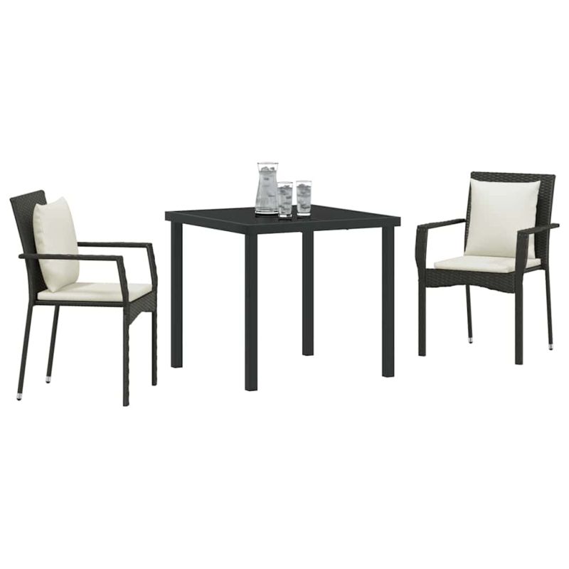 Комплект за хранене в градината 3 pcs Черно полиратан