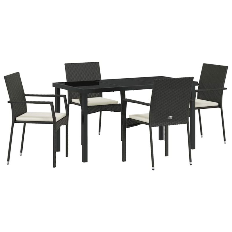 Комплект за хранене в градината 5 pcs Черно полиратан