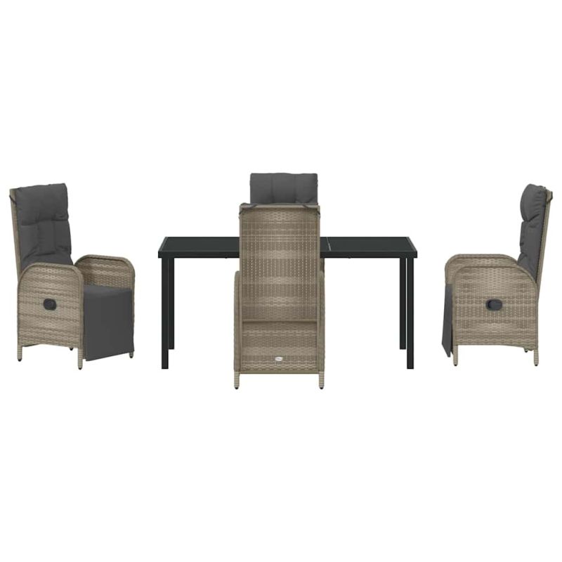Този модерен комплект за хранене в градината е съвършено съчетание от стил и практичност. С него всяка открита трапезария става още по-привлекателна. Проектиран за удобно хранене на открито, този комплект предлага чисти линии и стилен вид, който кандидара за релаксация и социални събирания. Материално съвършенство: Този комплект предлага полиратан, известен с UV устойчивостта си, който запазва красотата си дори през слънчевите дни. Подплатен с качествена стоманена рамка, предлага стабилна основа и дълготрайност, идеален за летни събирания. Включени компоненти: Всеки елемент разполага с плот от закалено стъкло, лесен за почистване и стилен, а полирани ратанови седалки с комфортни възглавници предлагат удобство. Комбинацията придава елегантност на всяко хранене. Комфорт и дизайн: Комплектът има плавно извити подлакътници и удобен гръб, които осигуряват баланс между естетика и комфорт. Леката конструкция позволява лесно пренареждане за всякакви поводи, добавяйки гъвкавост и чар на вашата градина. Практически приложения: Идеален за тераси, градини и балкони, комплектът се вписва безпроблемно в различни открити пространства. Неговият модерен вид отлично се съчетава с съвременната естетика, идеален за забавления или спокойни вечери навън. Насоки за поддръжка: За да запазите външния му вид, покривайте го, когато не се ползва. Тази простичка грижа ще удължи живота му и ще запази привлекателността му, без притеснения от повреди. Максимално 110 кг на седалка.