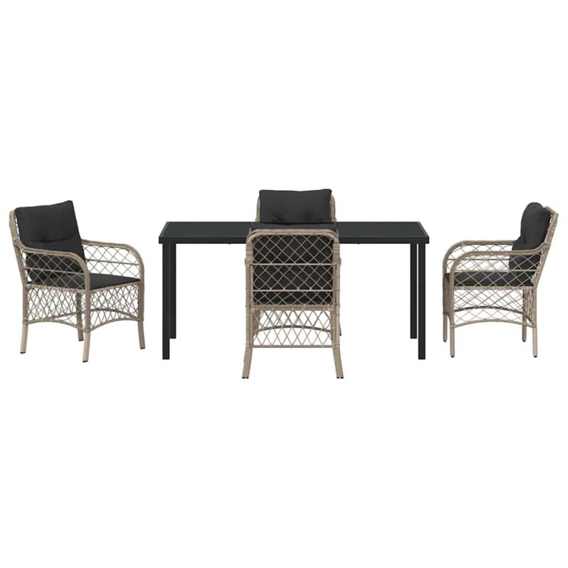 Комплектът Modern за хранене в градината съчетава стил и уют с прахово боядисана стомана и полиратан. Неговият минималистичен дизайн прави всяко хранене на открито приятно. Приветливата обстановка е идеална за събирания с близки на слънчеви тераси или в градина. Този комплект добавя модерен акцент във вашето пространство и прави всяко ястие повод за празнуване. Модерна конструкция: Изработен от прахово боядисана стомана и полиратан, този комплект е здрава, но и визуално привлекателна. Устойчив на атмосферни условия и гарантира свеж вид. Удобство: Включва възглавници от устойчива на времето материя, с подвижни калъфи, които улесняват поддръжката. Стъклена маса: Chic закалена стъклена маса, която добавя стил и удобство, лесна за почистване. Лесна поддръжка: Използвайте покритие, когато не е в употреба – така ще предпазите комплекта от атмосферните условия. Ергономични подлакътници: Меките полиратанови подлакътници осигуряват комфорт по време на храненето. Идеален е за незабравими моменти с приятели или семейство. Максимално 110 кг на седалка. Съобразете се с риска от открит огън и други източници на силна топлина в близост до продукта.