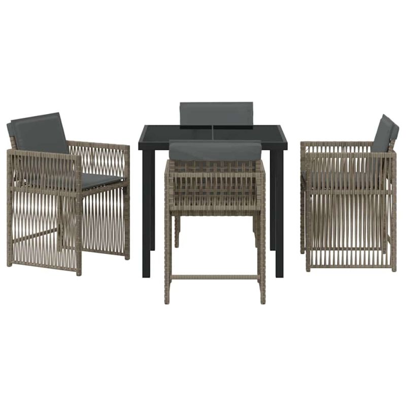 Комплект за хранене в градината 5 pcs Сив полиратан