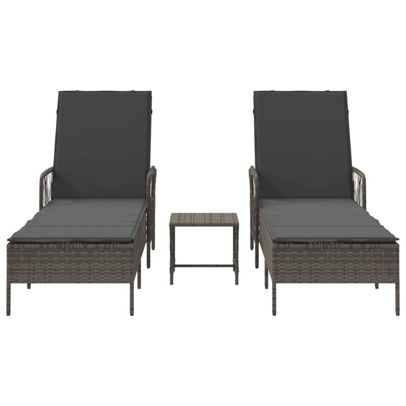 Шезлонг с възглавница 2-човек 2 pcs Сив полиратан