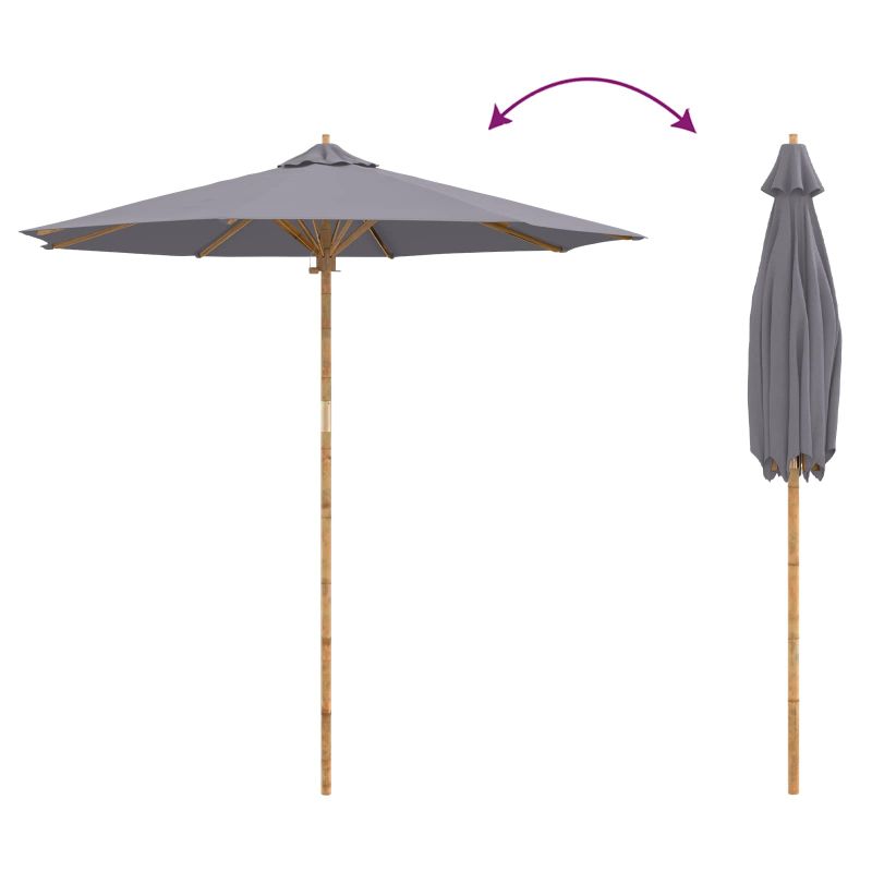 Градински парасол Тъмен сив Ø 270 x 260 см бамбук