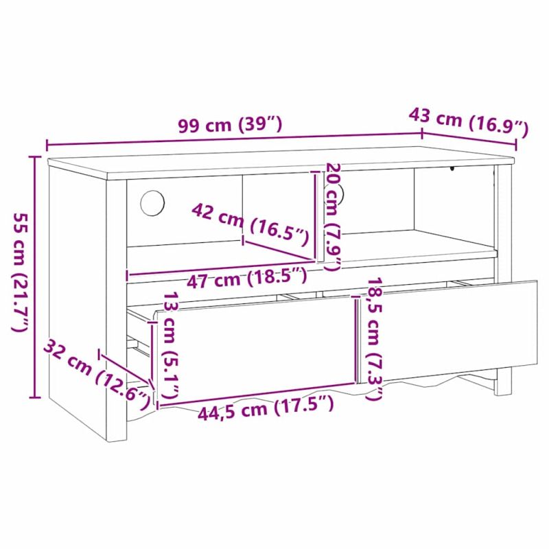 ТВ шкаф Drammen Дъб 99 x 43 x 55 см Масивна борова дървесина