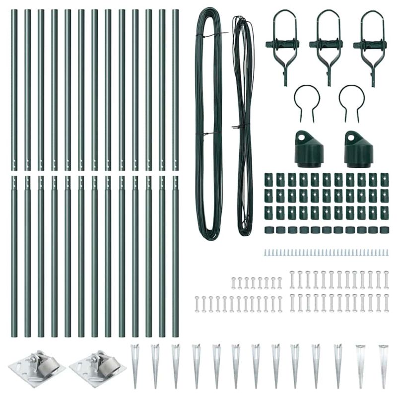 Оградни стълбове 13 pcs Зелен Ø32mm 140 см Поцинкована стомана