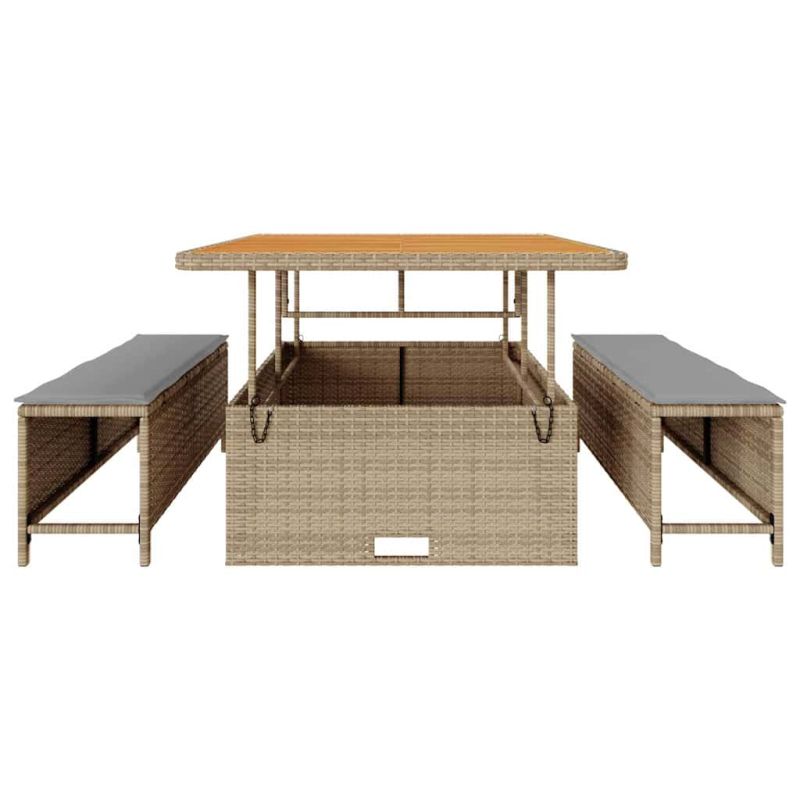 Този комплект за хранене е всичко, от което имаш нужда, ако обичаш да хапваш навън. С модерен и изчистен дизайн, той добавя свежа нотка към терасата или градината. Материалите му са уникални и придават страхотен вид, подходящ за всякакви събирания и приятни вечери, докато се наслаждаваш на красотата на природата. Конструкция от полиратан: Стилен и здрав, полиратанът придава страхотен вид на комплекта. Той е идеален за външни условия, обещава комфорт и стил независимо от времето. Повърхности от акациева дървесина: Акация е не само красива, но и супер здрава. Така че ще се чувстваш уверено, докато ядеш с приятели. Подложки с пяна: Удобството на омекотените подложки е незаменимо, а и поддръжката им е лесна – просто ги сваляш и пераш. Здрава стоманена рамка: Стоманената конструкция гарантира стабилност и дълговечност. Идеално за всяка градина или тераса, не се колебай. Регулируеми функции: Този комплект е адаптивен и отговаря на различни нужди. Идеален за всякаква употреба навън.