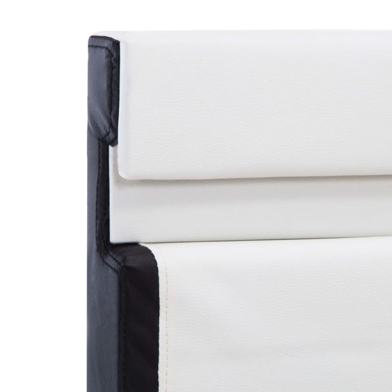 Рамка за легло с LED, бяло и черно, изкуствена кожа, 90x200 cм