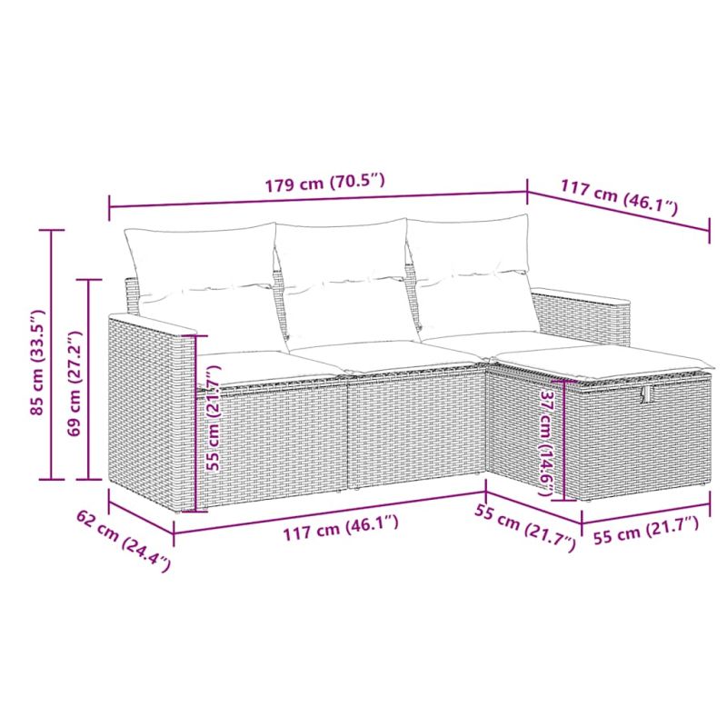 Този градински диван е идеалното допълнение към вашия заден двор, тераса или вътрешен двор, осигурявайки удобно и привлекателно пространство за разговори със семейството и приятелите или просто за почивка и забавление на открито. Издръжлив материал: PE ратан, известен също като полиратан, е здрав синтетичен материал с малко необходима поддръжка, който прилича на естествен ратан. Той е лек, лесен за почистване и често се използва за външни мебели поради своята издръжливост и устойчивост на атмосферни влияния.Функция за съхранение с водоустойчива чанта: Всяка градинска седалка разполага с място за съхранение под седалката, допълнено с водоустойчива чанта за съхранение на възглавници, играчки и други предмети. Вътрешната чанта има горен капак и може да бъде здраво закрепена към седалката със закопчалки за допълнителна стабилност.Универсална табуретка за крака: Табуретката е универсална и служи като удобна поставка за крака, когато се излежавате на дивана или като допълнителна седалка във вашата градина.Калъф, който може да се сваля и може да се пере: Тези възглавници за седалки имат подвижни калъфи за лесно пране и поддръжка.Здрава и стабилна рамка: Прахово боядисаната стоманена рамка е здрава, стабилна, издръжлива и устойчива на корозия и неблагоприятни атмосферни условия, което гарантира дълготрайна експлоатация. Добре е да се знае:За да сте сигурни, че вашите външни мебели ще останат красиви, ви препоръчваме да ги защитите с водоустойчиво покривало.