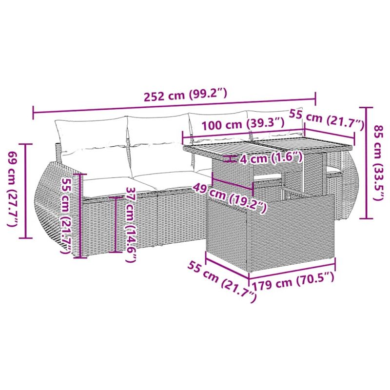Този градински диван е идеалното допълнение към вашия заден двор, тераса или вътрешен двор, осигурявайки удобно и привлекателно пространство за разговори със семейството и приятелите или просто за почивка и забавление на открито. Издръжлив материал: PE ратан, известен също като полиратан, е здрав синтетичен материал с малко необходима поддръжка, който прилича на естествен ратан. Той е лек, лесен за почистване и често се използва за външни мебели поради своята издръжливост и устойчивост на атмосферни влияния.Функция за съхранение с водоустойчива чанта: Всяка градинска седалка разполага с място за съхранение под седалката, допълнено с водоустойчива чанта за съхранение на възглавници, играчки и други предмети. Вътрешната чанта има горен капак и може да бъде здраво закрепена към седалката със закопчалки за допълнителна стабилност.Регулируем плот: Плотът може да се повдигне, за да направи масата по-висока, което трансформира външната маса от маса за кафе в маса за хранене. Идеална е за гости или за хранене навън.Калъф, който може да се сваля и може да се пере: Тези възглавници за седалки имат подвижни калъфи за лесно пране и поддръжка.Здрава и стабилна рамка: Прахово боядисаната стоманена рамка е здрава, стабилна, издръжлива и устойчива на корозия и неблагоприятни атмосферни условия, което гарантира дълготрайна експлоатация. Добре е да се знае:За да сте сигурни, че вашите външни мебели ще останат красиви, ви препоръчваме да ги защитите с водоустойчиво покривало.