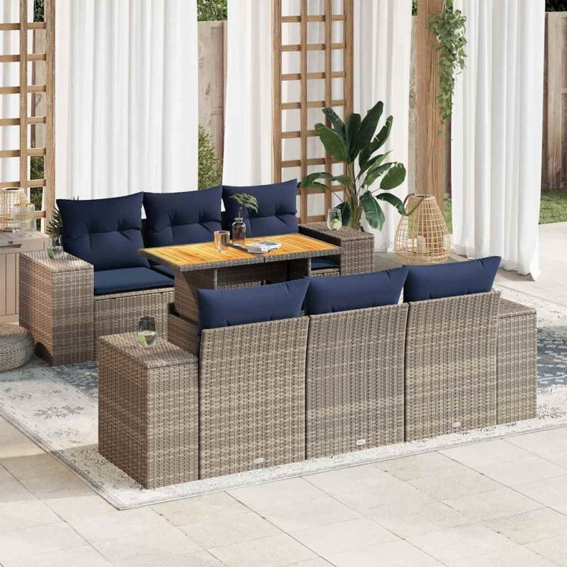 Начало Дом и градина Мебели Външни мебели Комплекти градински мебели Градински диван с възглавници, 7 части, полиратан, сив