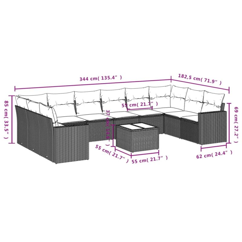 Градински комплект диван с възглавници 11 части кафяв полиратан