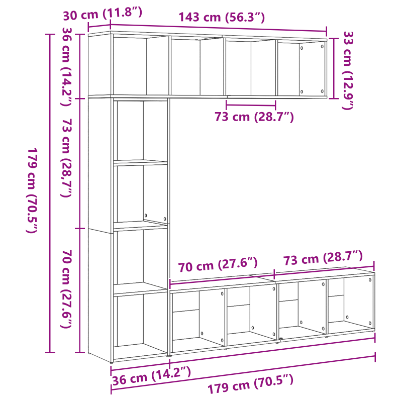 Рафт за книги 3 pcs Черния дъб 36 x 30 x 143 cm Инженерно дърво