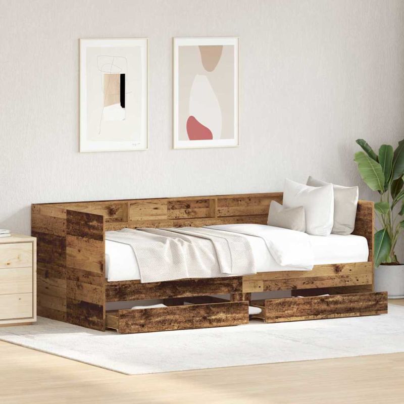Легло-диван с таблото Старо дърво 100 x 200 cm Инженерно дърво
