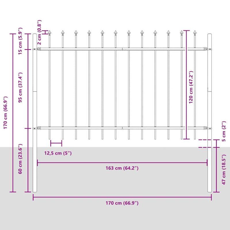 Градска ограда 5 pcs Сив 8,5 x 1,2 м Прахово боядисана стомана