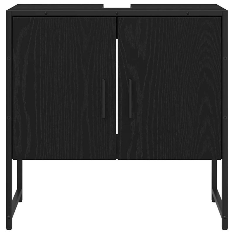Комплект мебели за баня с рафт 4 pcs Черно Инженерно дърво
