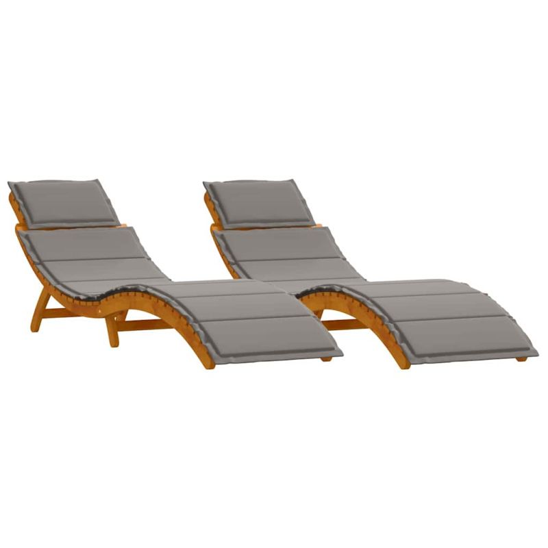 Шезлонг 2 pcs Сив 184 x 55 x 64 см Масивна акациева дървесина