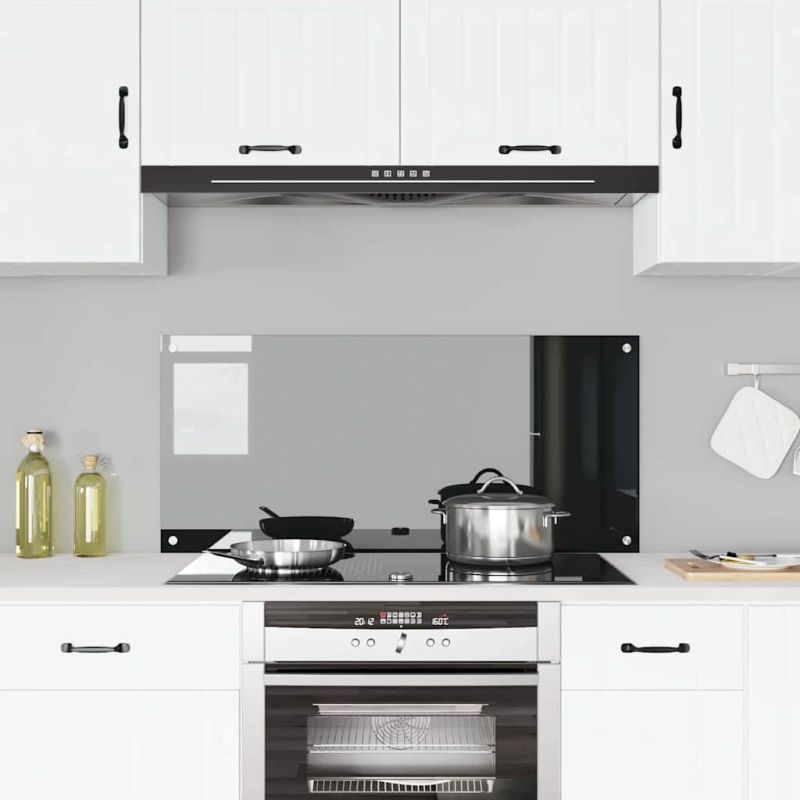 Кухненски заден панел Черно 110 x 50 x 0,6 см закалено стъкло