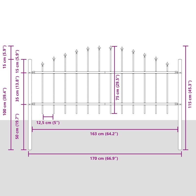 Тази здрава градинска ограда е направена от прахово боядисана стомана и съчетава здравина с модерен вид. Тя е перфектна за външна употреба, предлагаща сигурност и подобрявайки красотата на ландшафта. Слемната линия на дизайна й позволява да се вписва в различни открити среди, като осигурява гъвкавост на собствениците да управляват градинския си стил. Оградата е практично и декоративно решение за градински граници, независимо дали служи за фон на цветя или обозначава отделни секции. Надеждни материали: Изработена от прахово боядисана стомана, нашата ограда е стабилна и водоустойчива, което я прави устойчива на климатични условия и запазва красотата си дълго време. Необходима е асамблея: Сглобяването се прави лесно от двама души с бормашина, което осигурява сигурно и персонализирано решение за вашето пространство. Функционални характеристики: Водоустойчивото покритие не позволява на влагата да повлияе на иглолистния вид на оградата, а също така защитава от нежелани натрапници. Универсално приложение: Подходяща за лятото и пролетта, тази ограда е перфектна за всякакви градински зони и използване на открито. Поддръжка и грижа: Минимална поддръжка е нужна - просто я поставете на желаното място и я оставете да поддържа спокойствието на вашата градина.