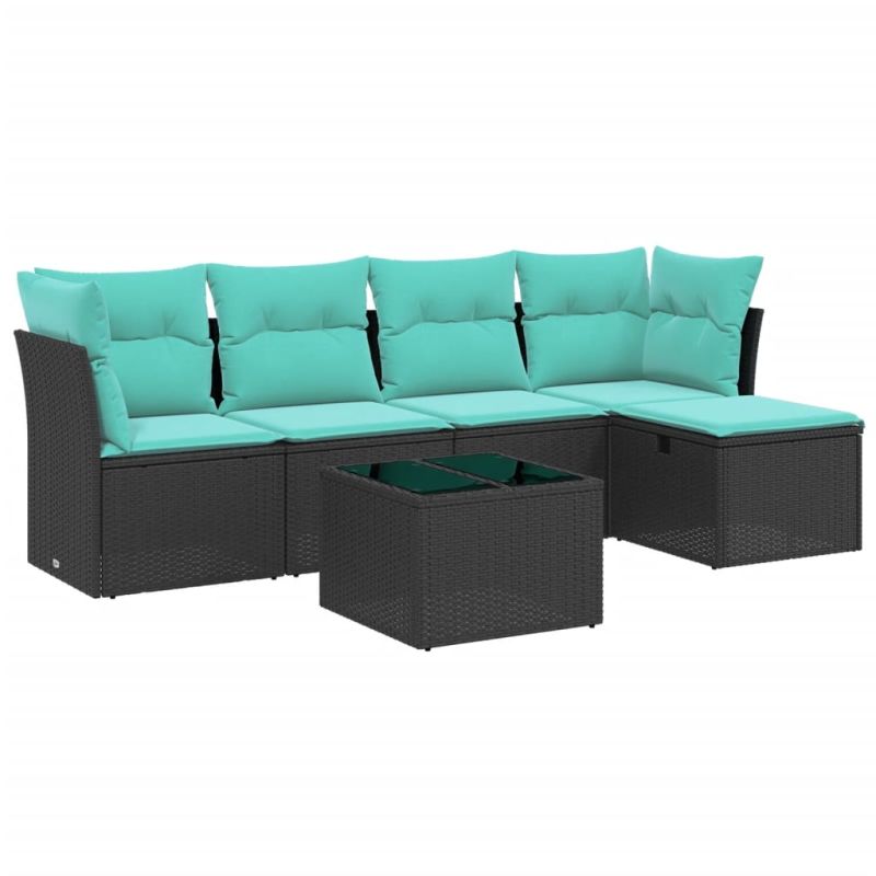 Градински комплект диван с възглавници 6 части черен полиратан