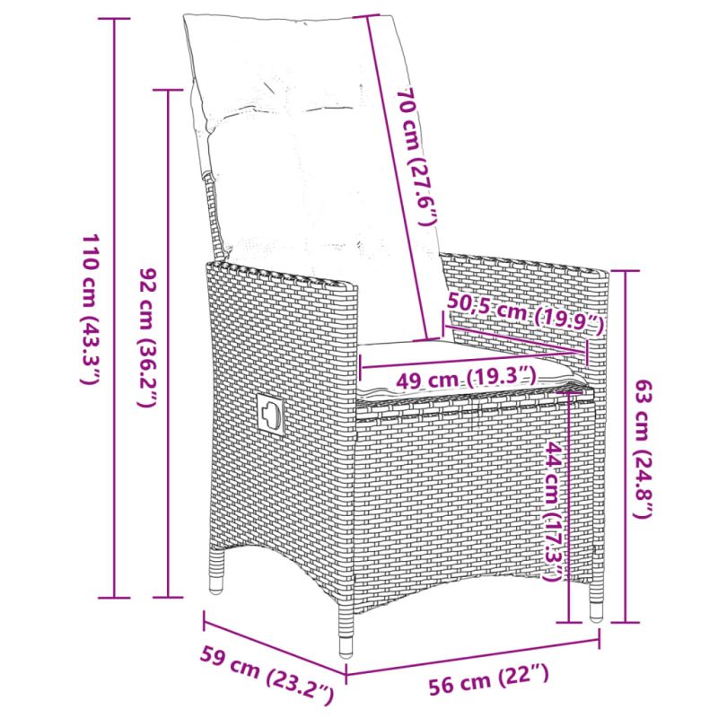 Насладете се на кафе или поговорете със семейството и приятелите си в градината, задния двор или на балкона с този удобен комплект за бистро! Издръжлив материал: PE ратан, известен също като полиратан, е здрав синтетичен материал с малко необходима поддръжка, който прилича на естествен ратан. Той е лек, лесен за почистване и често се използва за външни мебели поради своята издръжливост и устойчивост на атмосферни влияния.Регулируема облегалка: Този градински стол има дръжка. Можете да регулирате облегалката във всяка позиция чрез издърпване на дръжката и бързо да я върнете в първоначалната ѝ позиция.Удобна седалка: Тази мебел за открито, снабдена с плътно подплатени възглавници, предлага удобство при сядане.Калъф, който може да се сваля и може да се пере: Тези възглавници за седалки имат подвижни калъфи за лесно пране и поддръжка. Възглавниците за облегалките имат калъф отзад за лесно закрепване към облегалките.Стъклен плот: Плотът на външната маса е изработен от здраво и издръжливо закалено стъкло, което улеснява почистването с влажна кърпа и добавя нотка елегантност към вашето външно пространство. Добре е да се знае:За да сте сигурни, че вашите външни мебели ще останат красиви, ви препоръчваме да ги защитите с водоустойчиво покривало.