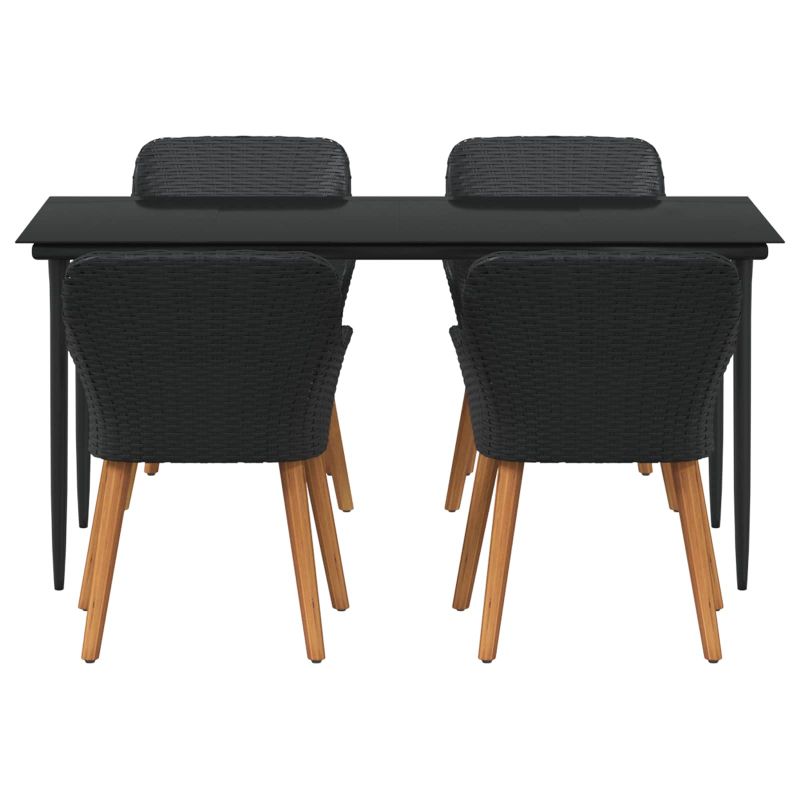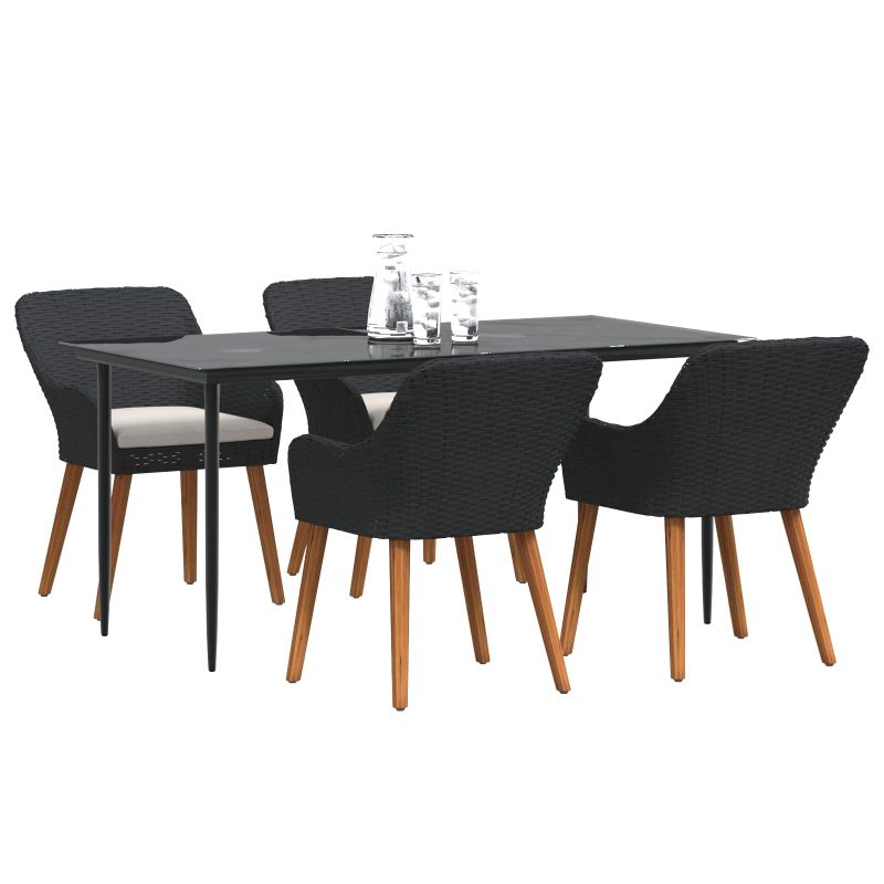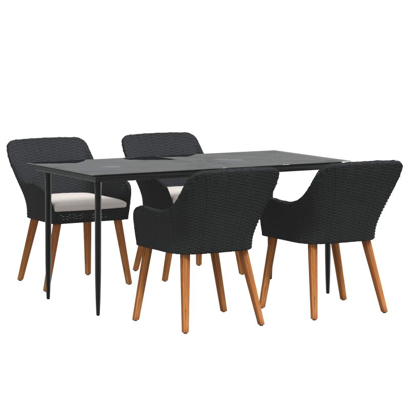 Комплект за хранене в градината 5 pcs Черно полиратан