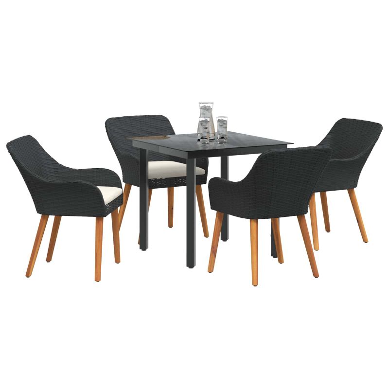Комплект за хранене в градината 5 pcs Черно полиратан