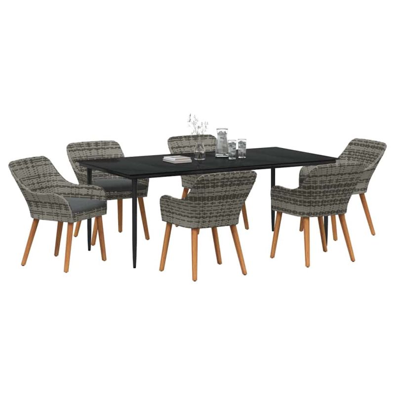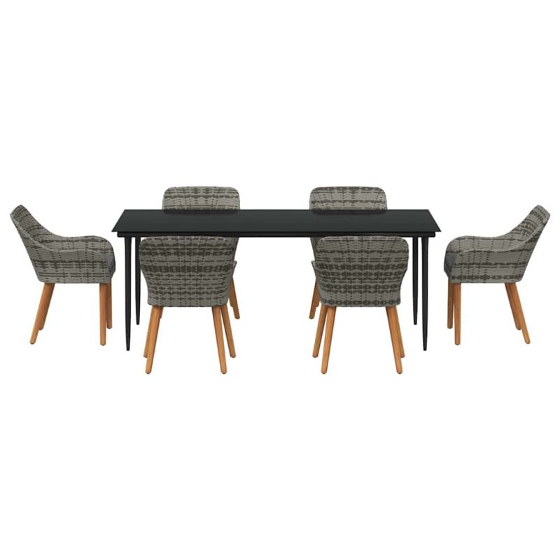 Комплект за хранене в градината 7 pcs Сив полиратан