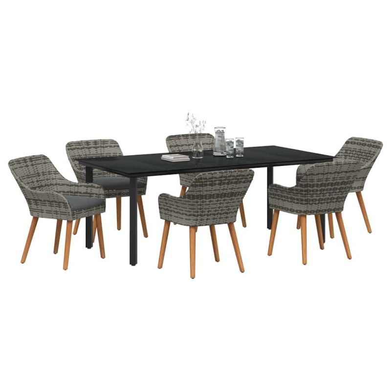 Комплект за хранене в градината 7 pcs Сив полиратан