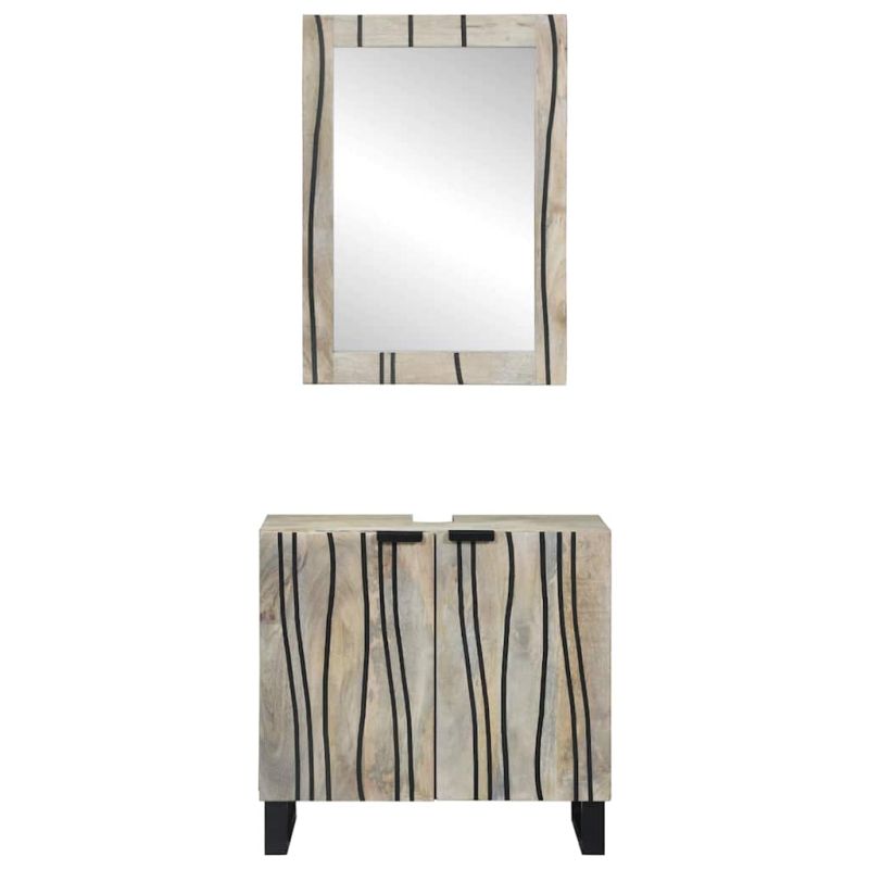 Този комплект Модерна Баня комбинира простота и функционалност, с чисти линии и минимални декорации. Със своя стил, той придава уют и предлага решение за съхранение на всичко необходимо - от козметика до хавлии. Материали: Комплектът е изработен от качествена инженерна дървесина, която е дълготрайна и красива. Това прави продукта надежден и привлекателен за всеки интериор. Включени компоненти: В комплекта получавате плоско огледало с размери 50 x 70 см и шкаф за мивка 62 x 33 x 58 см, с плъзгащи врати и достатъчно място за вашите принадлежности, поддържани от здрави черни метални крака. Характеристики & Функция: Този комплект предлага много място за съхранение и лесен достъп до всичко необходимо. Модерният дизайн с плъзгащи врати поддържа минималистичен вид, а инженерната дървесина осигурява стабилност и лесна поддръжка. Препоръчителни употреби: Идеален за модерни бани, комплектът съчетава функции с естетика и предлага достатъчно място за съхранение - перфектен за натоварени семейни бани или спокойни лични пространства. Поддръжка & Сглобяване: Лесен за поддръжка, просто забърсвайте с влажна кърпа, за да запазите красивия му вид. Сглобяването изисква само отвертка и е подходящо за двама души.