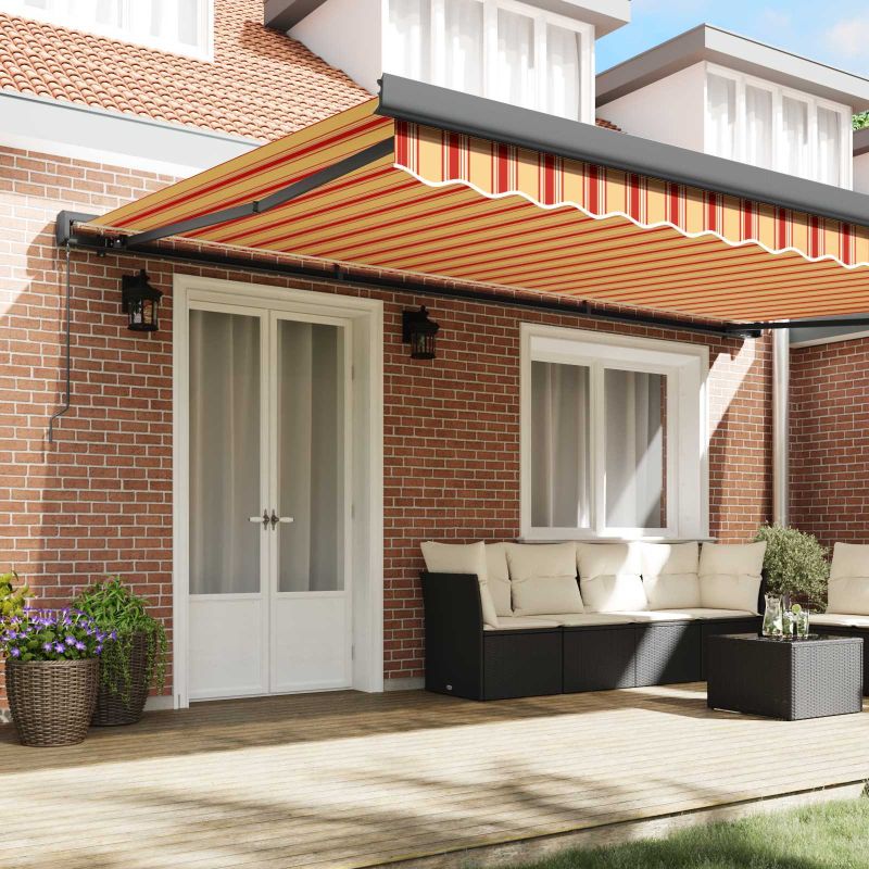 Сгъваем навес Жълт и оранжев 500 × 300 cm Текстил и Метал
