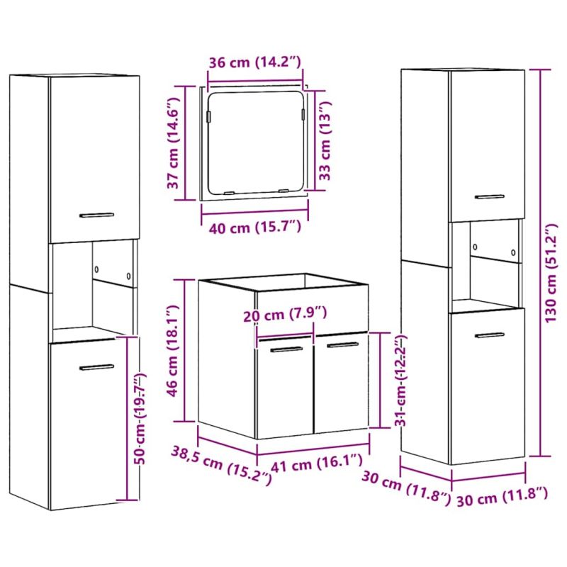 Комплект мебели за баня 4 pcs Старо дърво Инженерно дърво