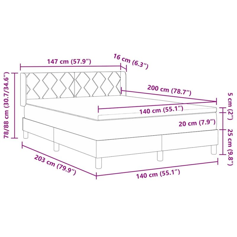 Легло с пружинирана основа Тъмен сив 200 x 140 cm Полиестер