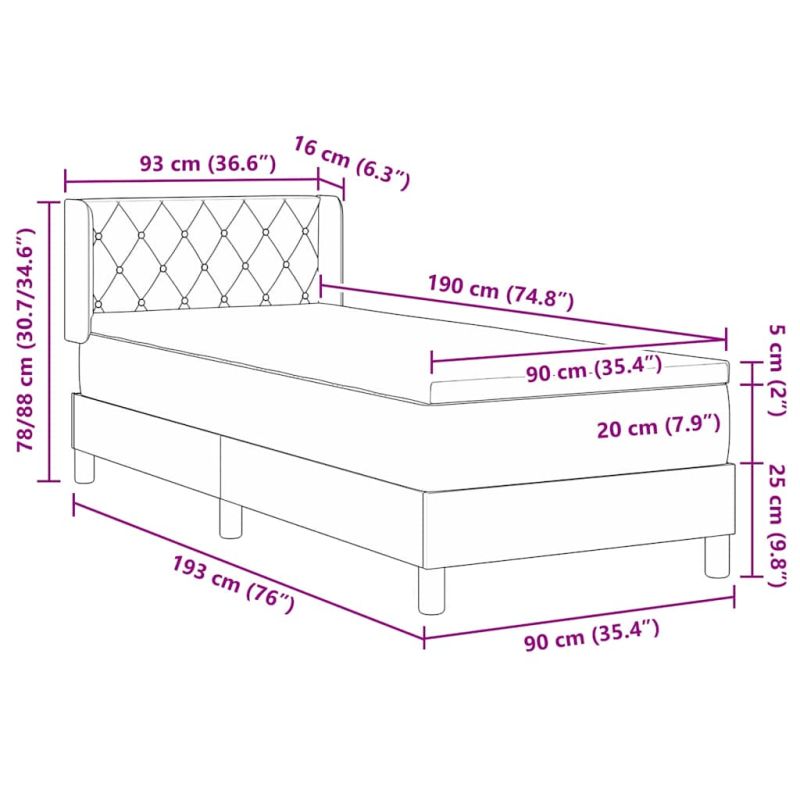Легло с пружинирана основа Светлосиво 190 x 90 cm Полиестер