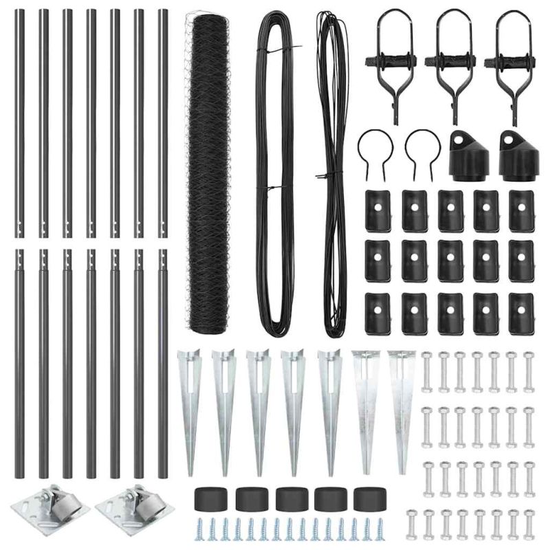 Стълб за ограда. Сив 10 x 1,2 м (50 мм мрежа) Стомана и PVC