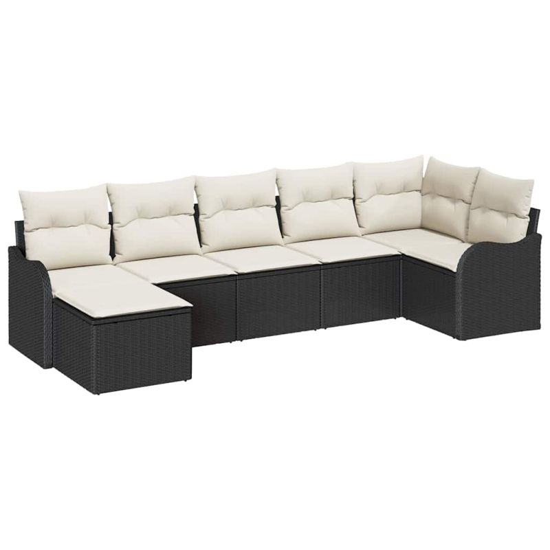 Градински Софа Комплект 7 pcs Черно и бяло Полиратан