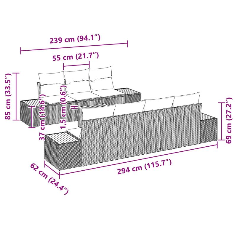 Градински Софа Комплект с възглавница 8 pcs Черно Полиратан