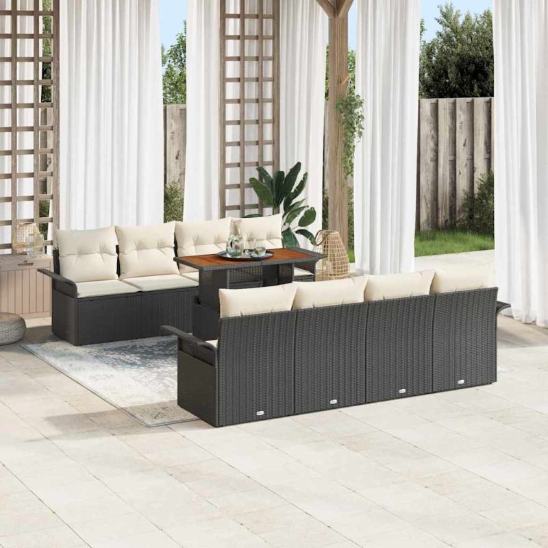 Градински Софа Комплект със съхранение 9 pcs Черно Полиратан