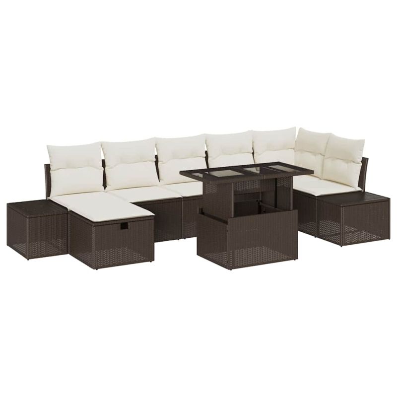 Градински Софа Комплект с възглавница 8 pcs Кафяво Полиратан