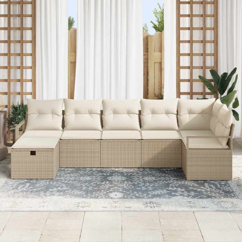 Градински Софа Комплект с възглавница 7 pcs Бежово Полиратан