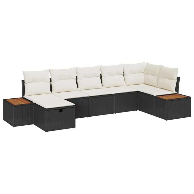 Градински Софа Комплект с възглавница 7 pcs Черно Полиратан