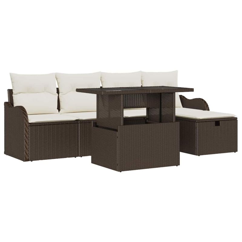 Градински Софа Комплект с възглавница 6 pcs Кафяво Полиратан