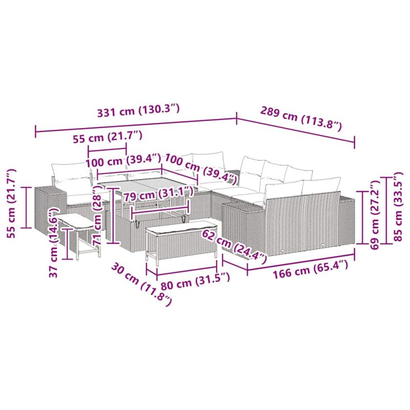 Градински Софа Комплект с възглавница 13 pcs Бежово полиратан