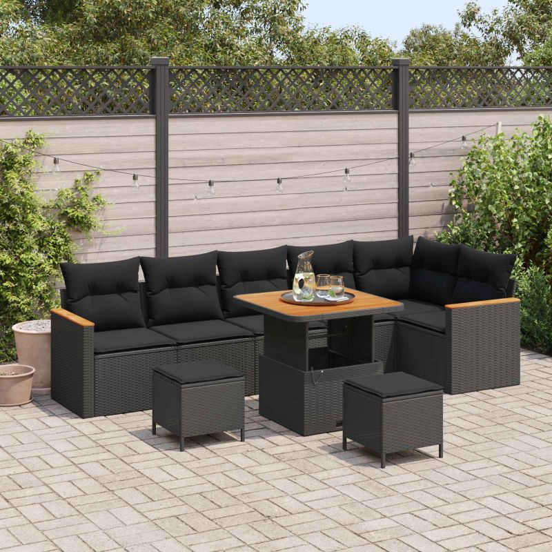 Градински Софа Комплект с възглавница 9 pcs Черно Полиратан