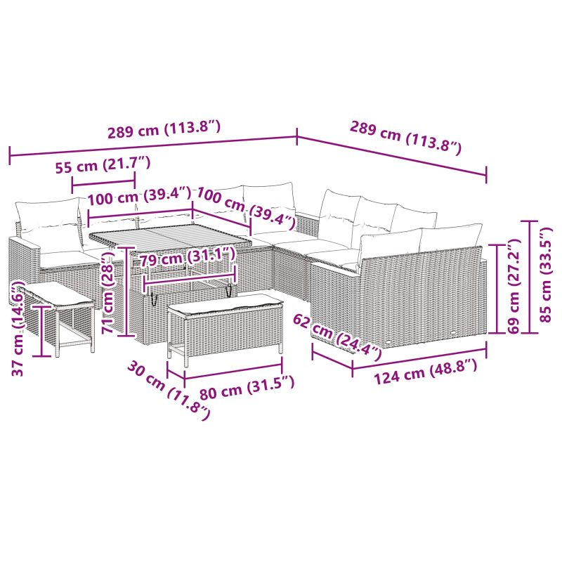 Този стилен модерен градински дивански комплект комбинира минималистичен дизайн с елегантност и е прекрасно допълнение за всяка градина или тераса. С добър баланс между визия и функция, той акцентира на съвременната простота с красиви линии и отличителни детайли. Полиратановата рамка му придава универсален вид, позволявайки му да се вписва лесно в различни открити декори. Модулната конструкция осигурява гъвкавост, идеална за настаняване на приятели и семейство в стил. Устойчиви материали: Основно от полиратан, този комплект доказва своята устойчивост на време и елементи. Добавените стоманени части гарантират здравина и дълготрайност, подходяща за всякакви условия. Тази комбинация осигурява здравина и елегантен вид, идеален за всяко открито пространство. Гъвкава конфигурация: Благодарение на модулния дизайн, потребителите лесно пренареждат местата според нуждите на различни поводи. Независимо дали организирате парти или просто искате спокойствие, адаптивността на комплекта удовлетворява вашите изисквания. Комфорт и стил: С меки възглавници, пълнени с пяна, местата предлагат удобство, насърчавайки продължителна почивка навсякъде. Плоските подлакътници са удобни, а кафявата акациева повърхност добавя стил. Оптимален дизайн за пространство: Този комплект е идеален за малки пространства, позволявайки максимално усвояване на площ без компромис в стил или комфорт. Перфектен за компактни градини или тераси, той осигурява ефективно използване в различни среди. Лесна поддръжка: Погрижете се за комплекта, като го избърсвате с влажна кърпа и покриете, когато не се използва. Лесната поддръжка ви позволява да се наслаждавате на пространствата без усложнения. Тези прости указания гарантират, че комплектът остава атрактивен дълго време.