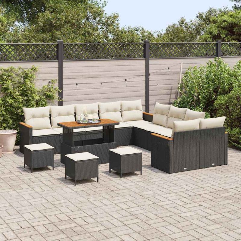 Градински Софа Комплект с възглавница 14 pcs Черно Полиратан