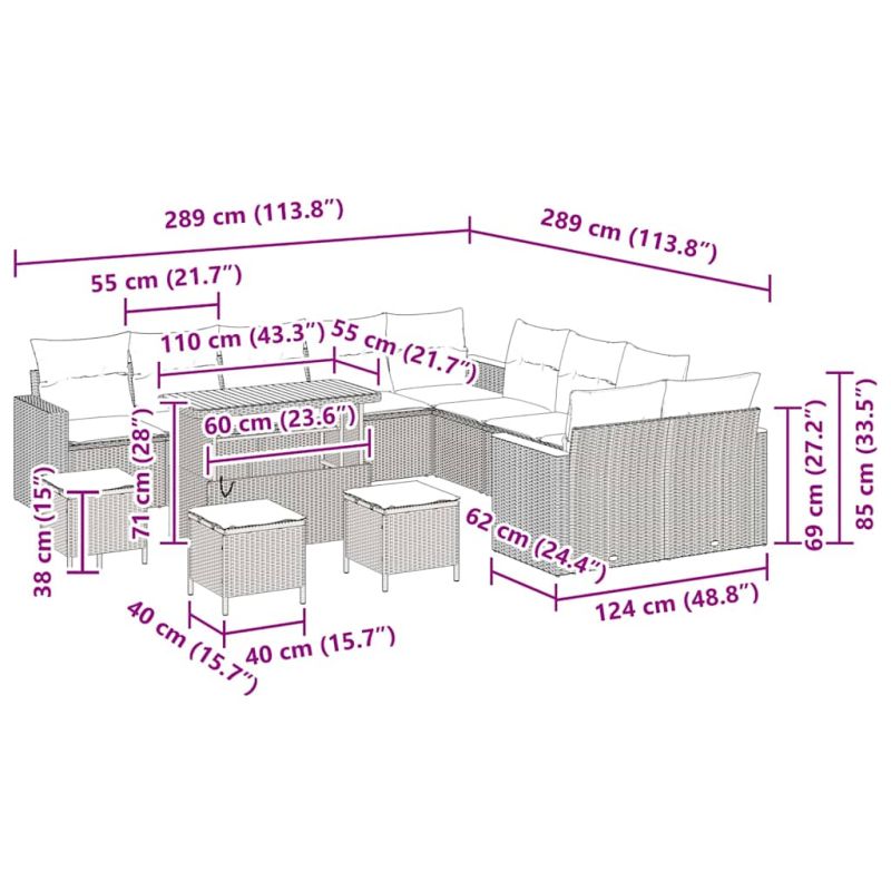 Градински Софа Комплект с възглавница 14 pcs Бежово Полиратан